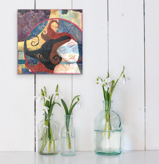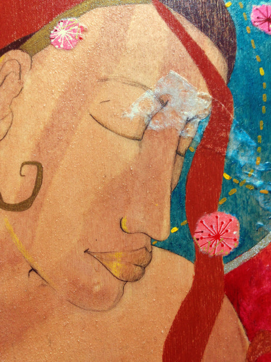In Passionate Silence, 14 x 11" mixed media painting on wood